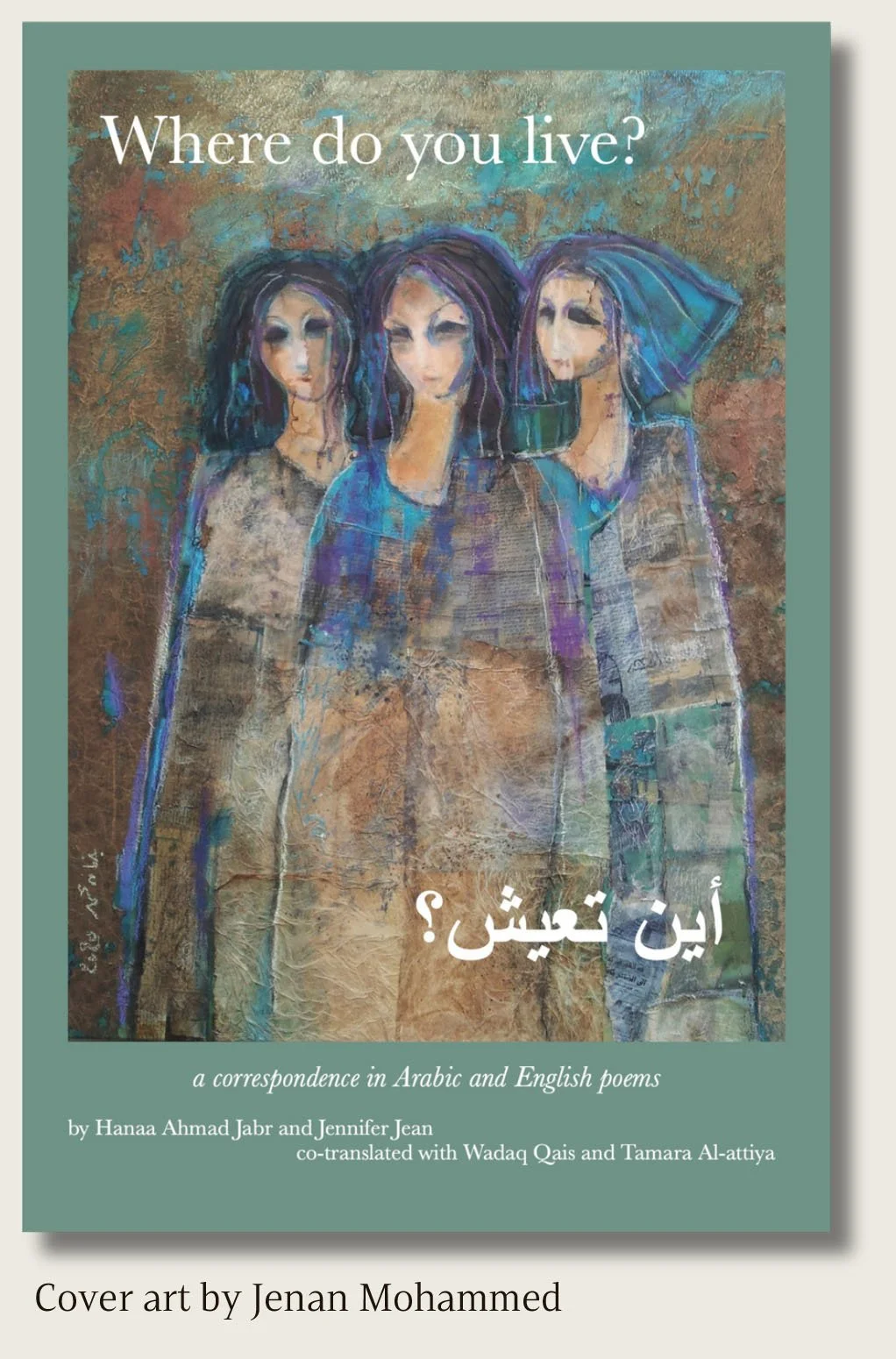 Where Do You Live? أين تعيش؟ is a bilingual, collaborative collection of “poem responses” in Arabic and English, written and co-translated by Iraqi poet Dr. Hanaa Ahmad and American poet Jennifer Jean—with the aid of Iraqi translators Tamara Al- Attiya and Wadaq Qais. In this intensely intimate book, poet talks to poet, and poem talks to poem. The process of the book's creation is a profound gesture towards peace and healing by women who believe in the enduring power of open-hearted dialogue. And, the “where” in question isn’t limited to a physical space but to the places minds and souls linger or reside.